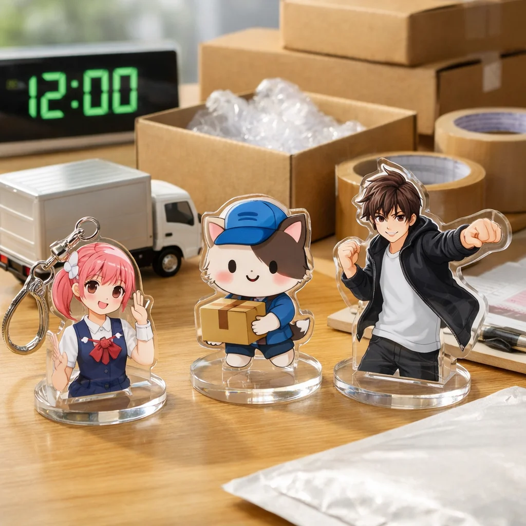 アクリルグッズの即日発送には、平日12時までの注文締切、在庫の確認、正確な住所入力、選べる決済方法、ヤマト運輸による配送手段が必要です。条件を満たす場合に限り、迅速にお届けできます。