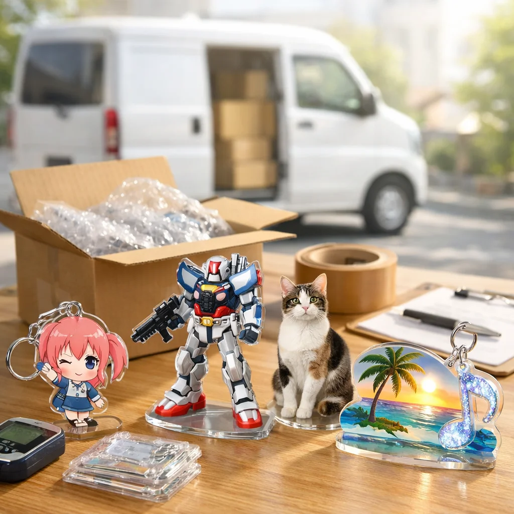 3. 地域の配送条件: 受取先の地域によって、アクリルグッズの即日発送が成立しにくい場合もあります。特に遠方の地域では、即日発送ができても、実際に商品が届くのに数日かかることがあるため、注文時には配送先の確認も忘れないようにしましょう。