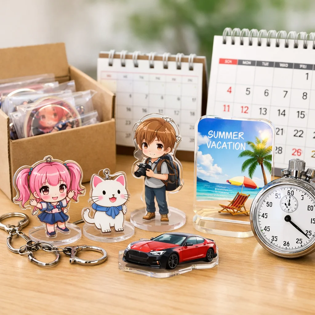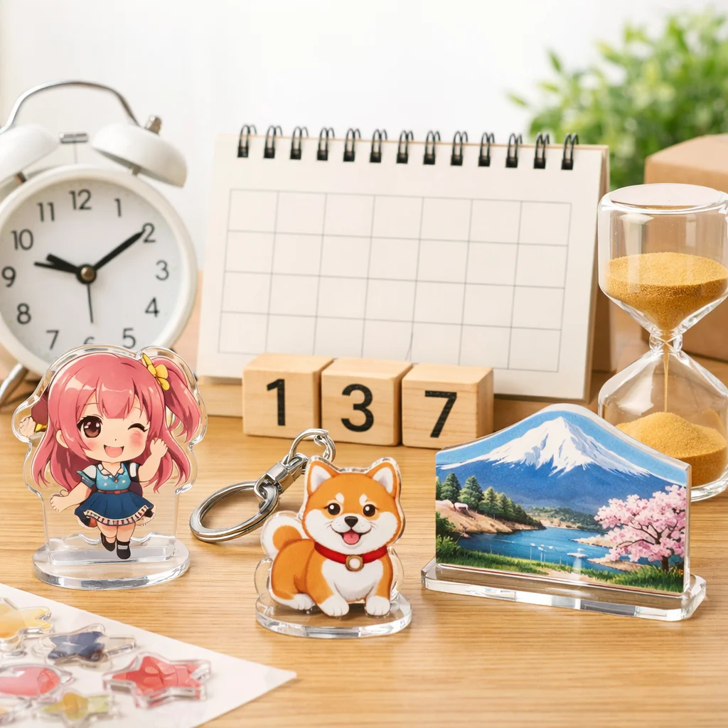 また、年度末や卒業・入学シーズン、年末商戦なども、アクリルグッズの需要が高まる時期です。これらの期間は、企業や学校、個人が新年度の準備やイベントに向けてアクリルグッズを大量に発注するため、納期が延びる可能性があります。