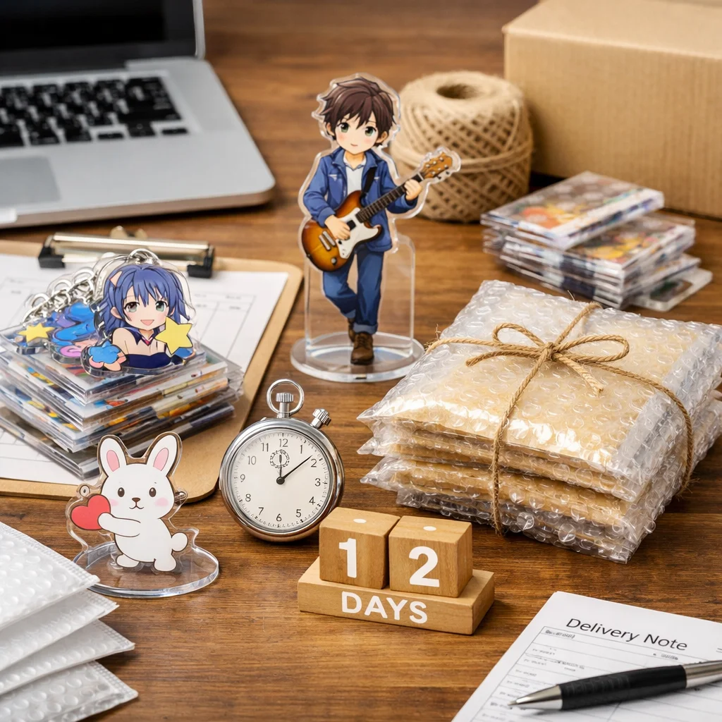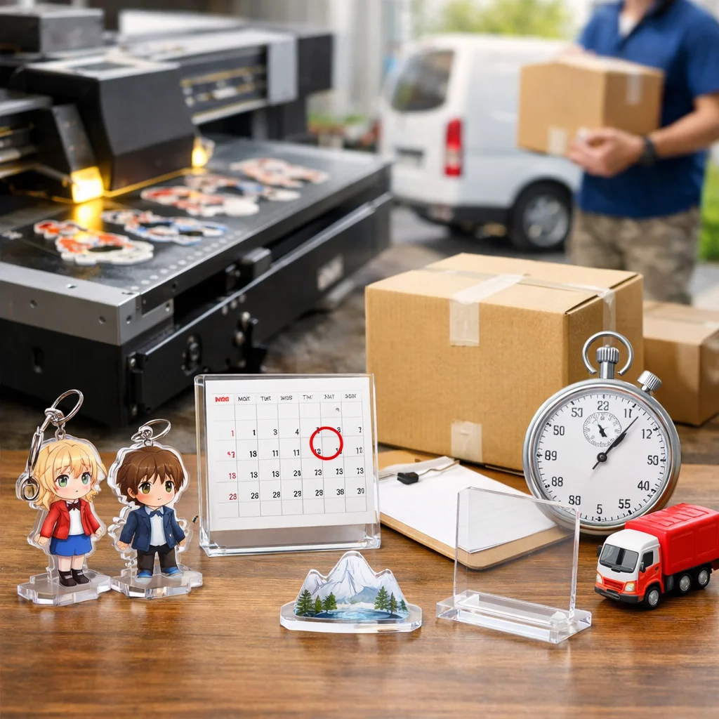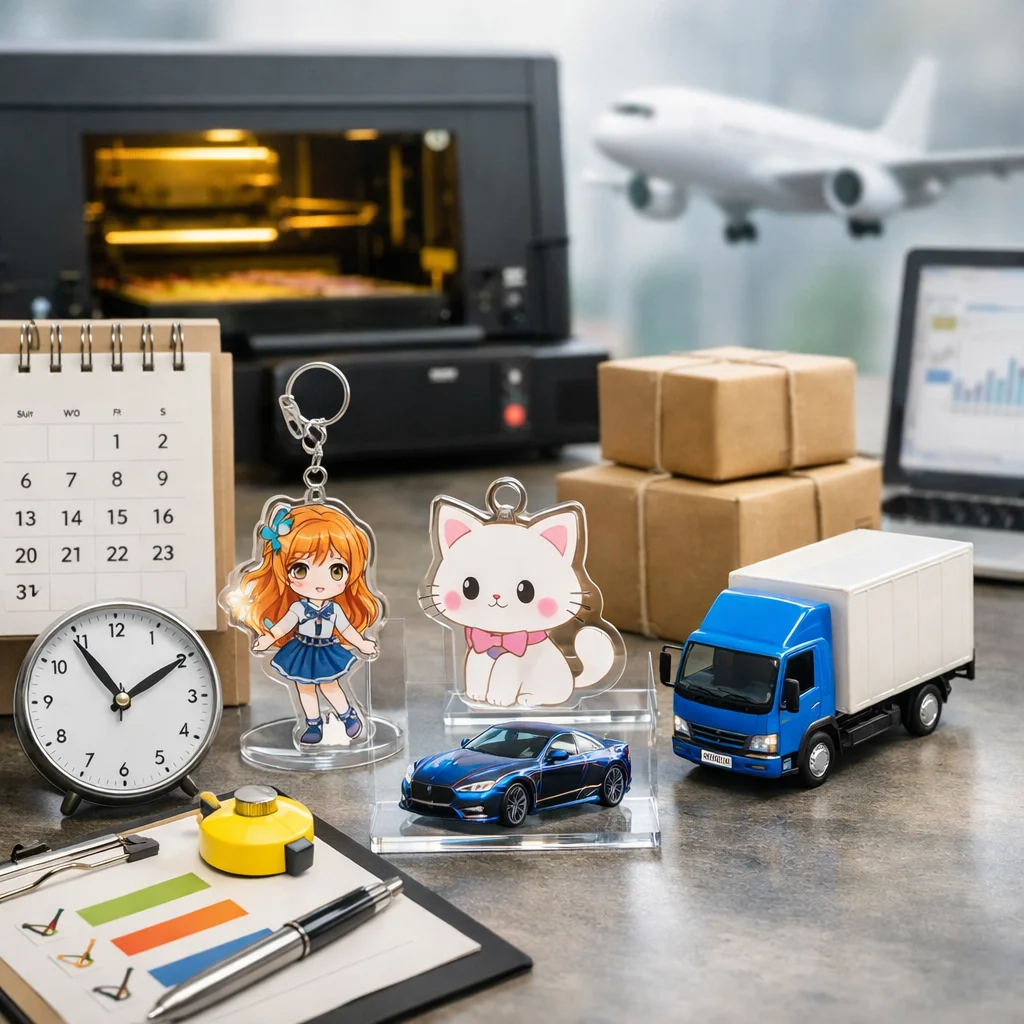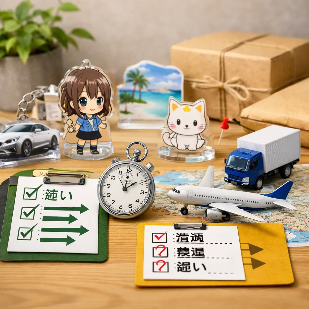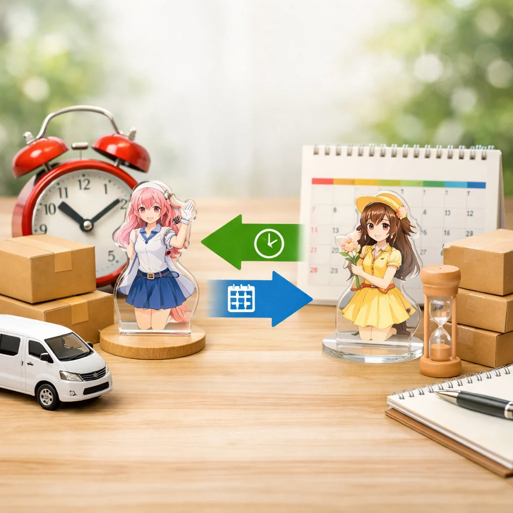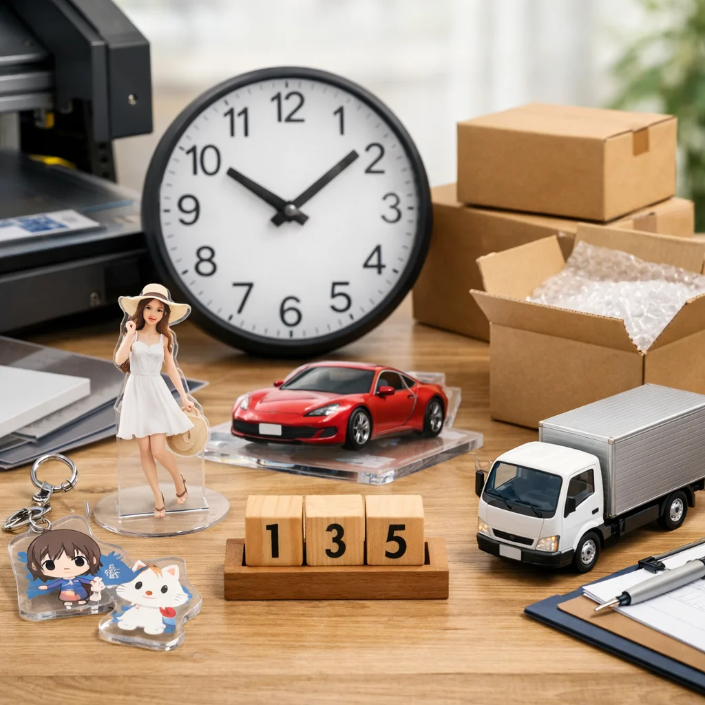 アクリルグッズの納期の長さや短さは、ビジネスにさまざまな影響を与えます。機会損失や品質リスクを減らすために、逆算やバッファ設定などの対策が重要です。