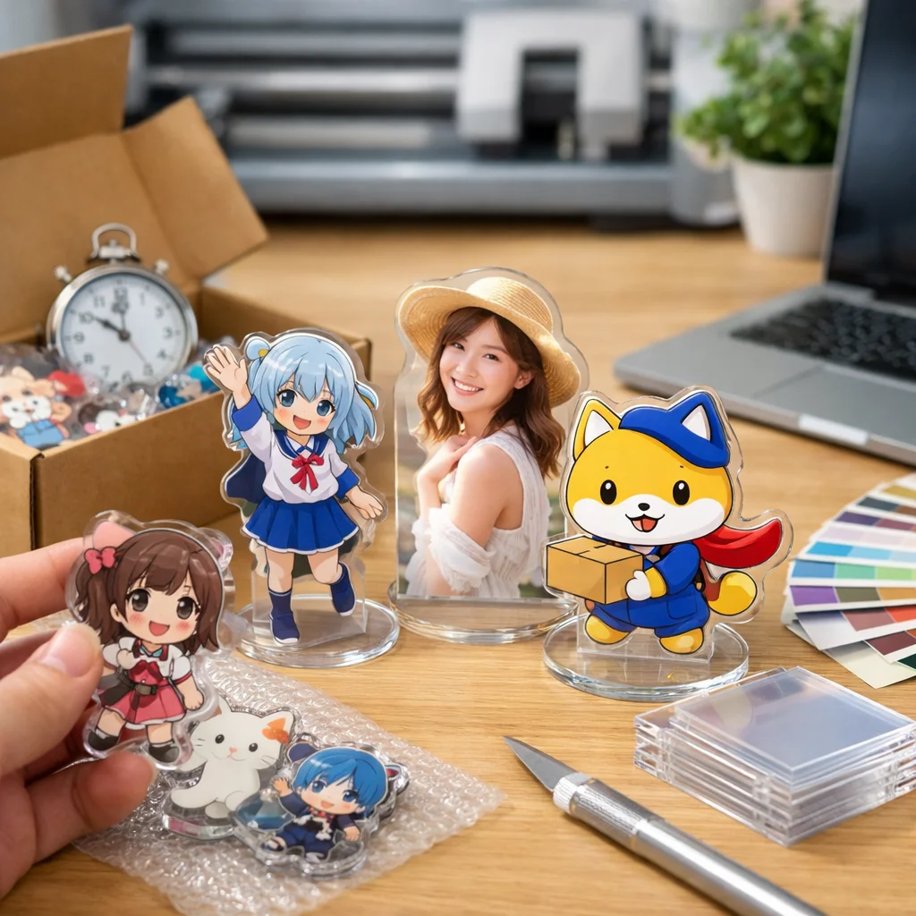 – 高品質なアクリルグッズの制作: 品質重視の場合、業者の実績やサンプルを確認し、納期に余裕を持つことが重要。