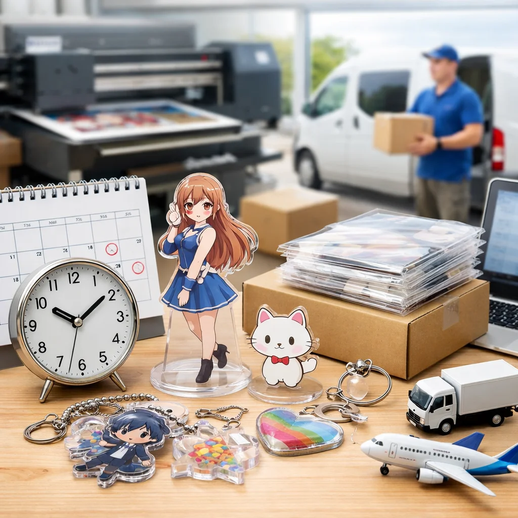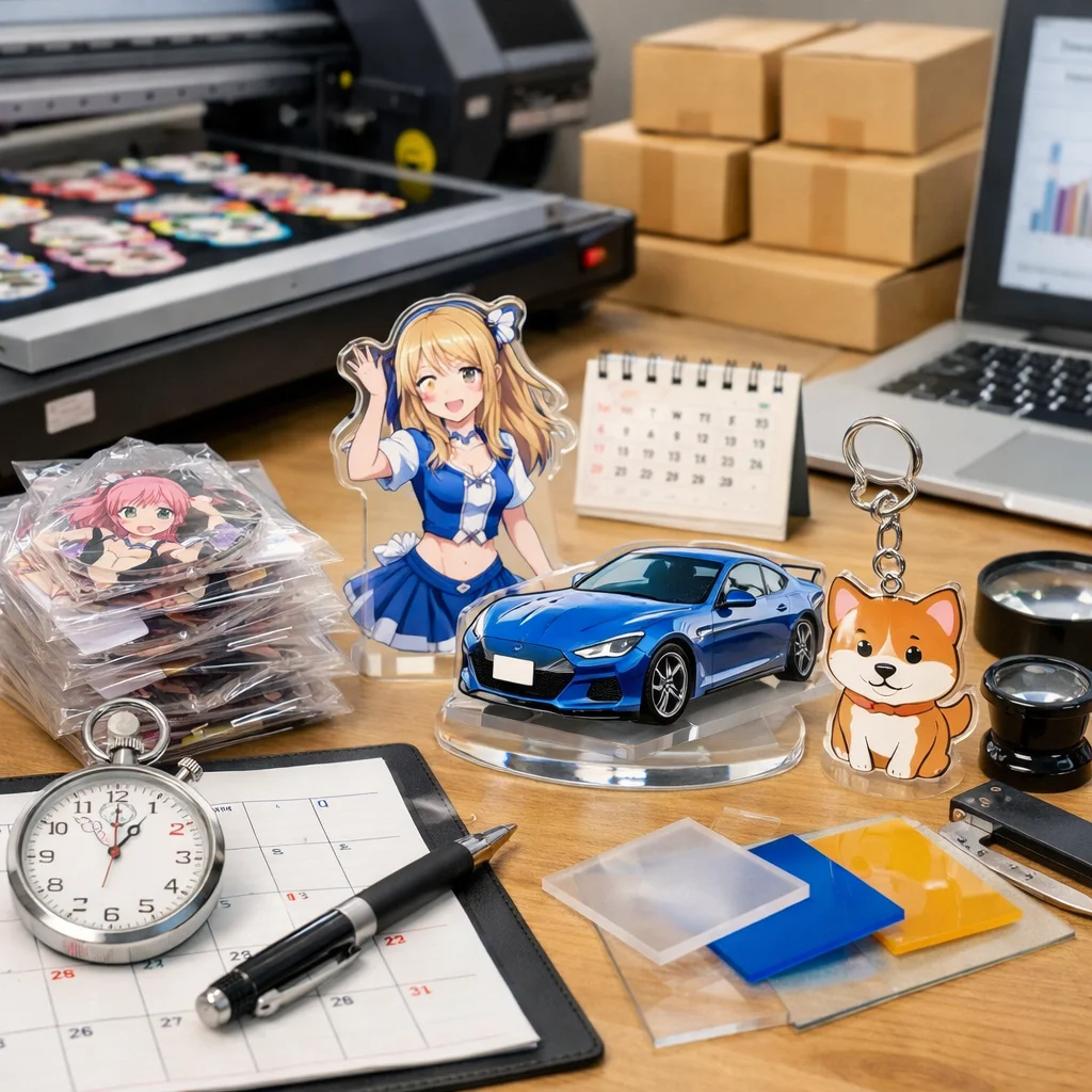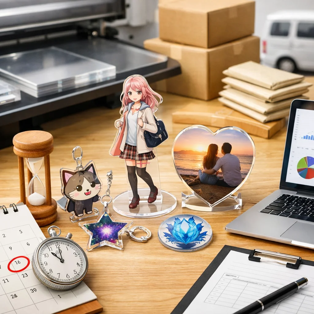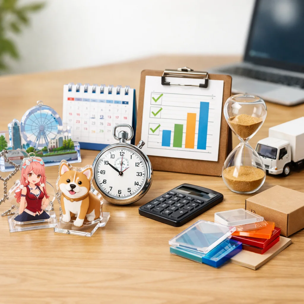 これらの事例から、アクリルグッズの納期は依頼内容や数量、仕様によって大きく変動することがわかります。遅延を防ぐためには、事前の計画と業者選びが重要です。信頼できる業者を選び、余裕を持ったスケジュールで発注することが、スムーズな制作と納品につながります。