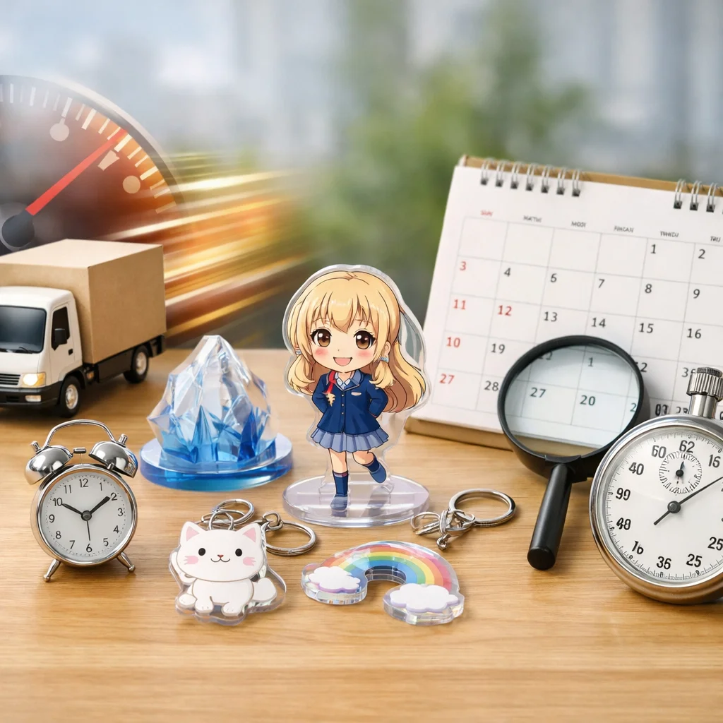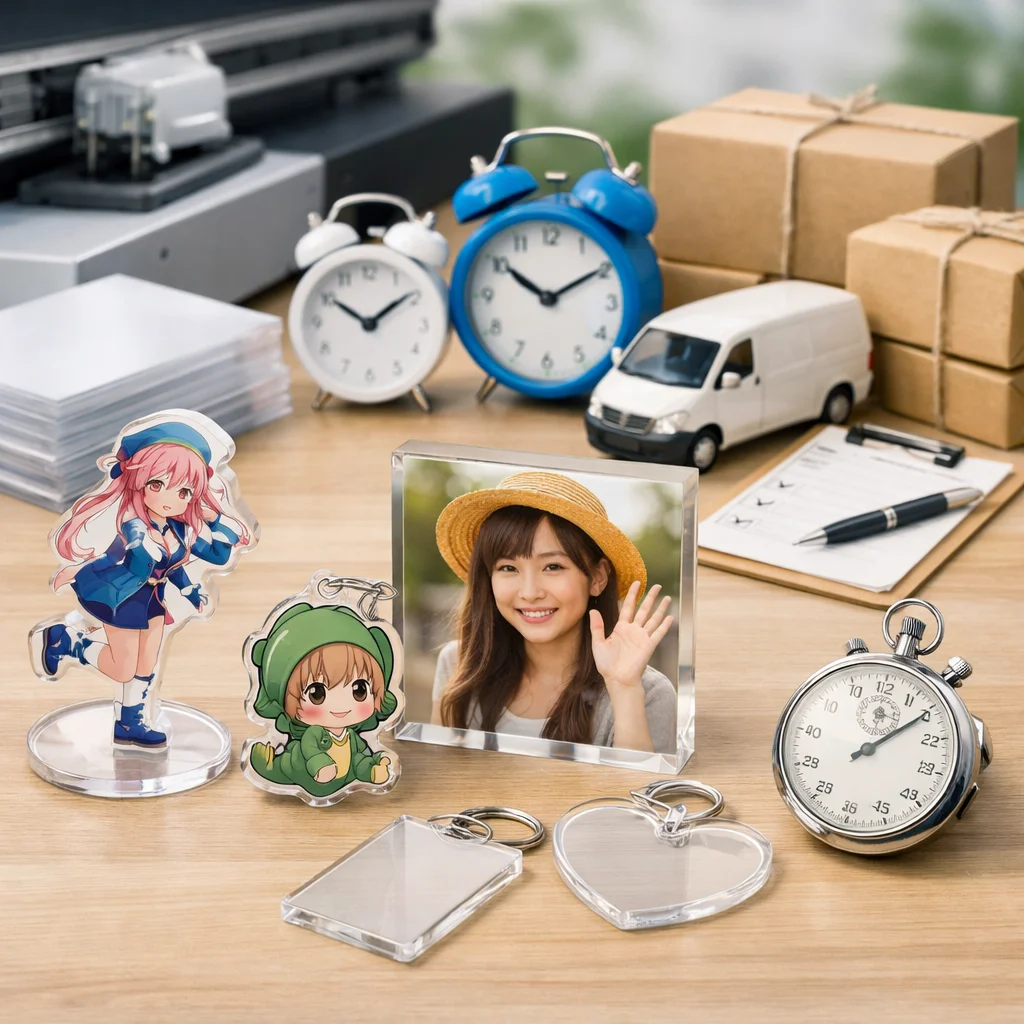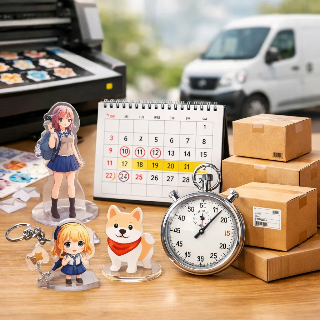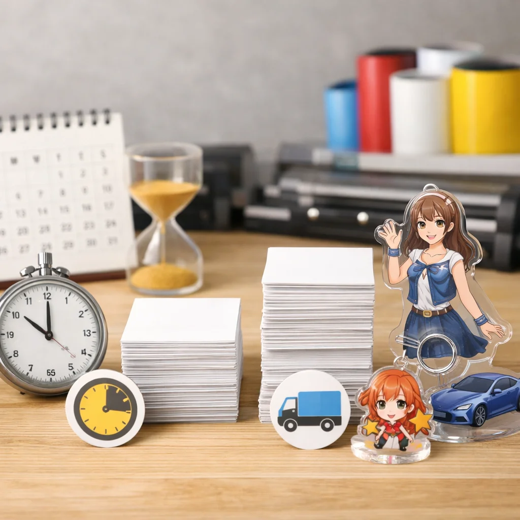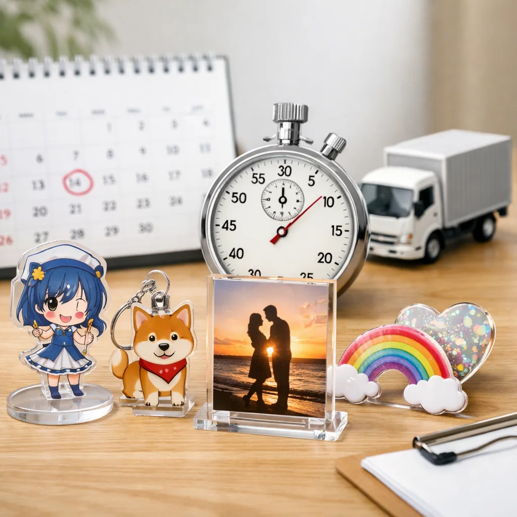 アクリルグッズの納期は、繁忙期に特に影響を受ける。早割や校正遅延、物流混雑が要因で、計画的な逆算スケジュールが重要。