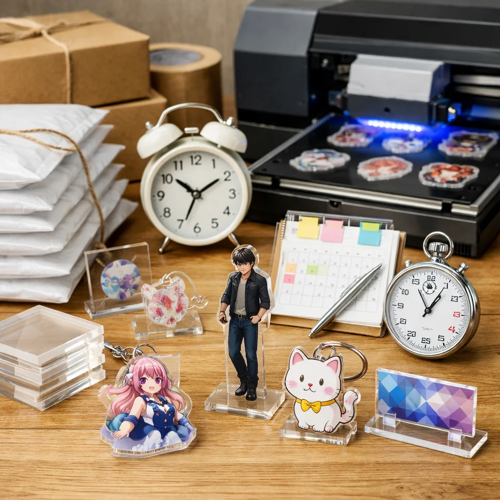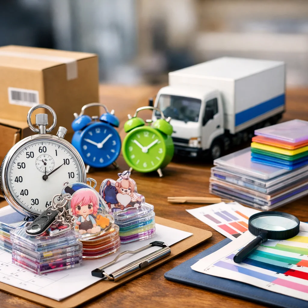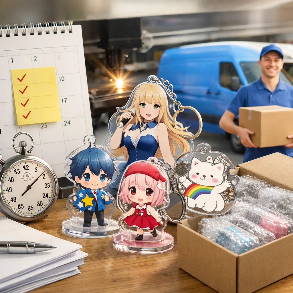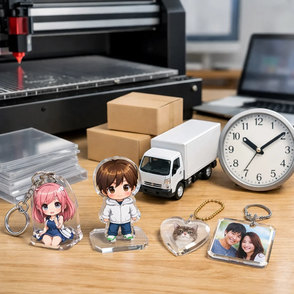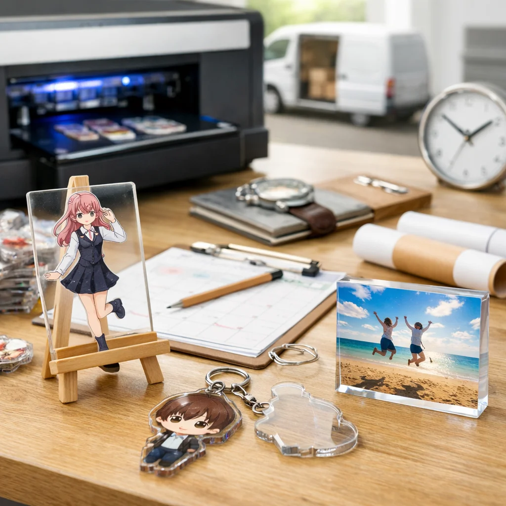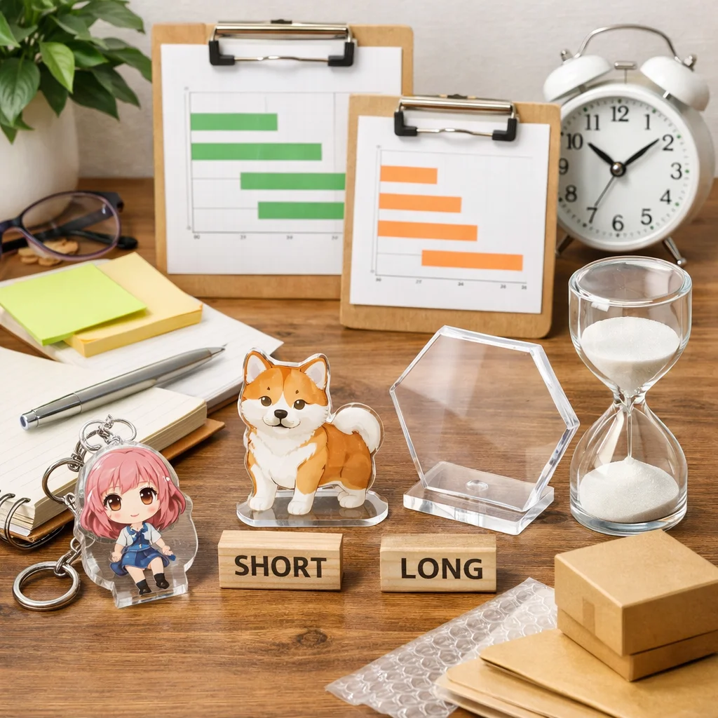 アクリルグッズの納期は、繁忙期に特に影響を受ける。早割や校正遅延、物流混雑が要因で、計画的な逆算スケジュールが重要。