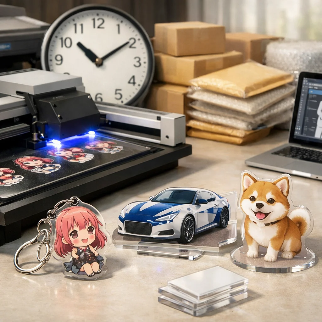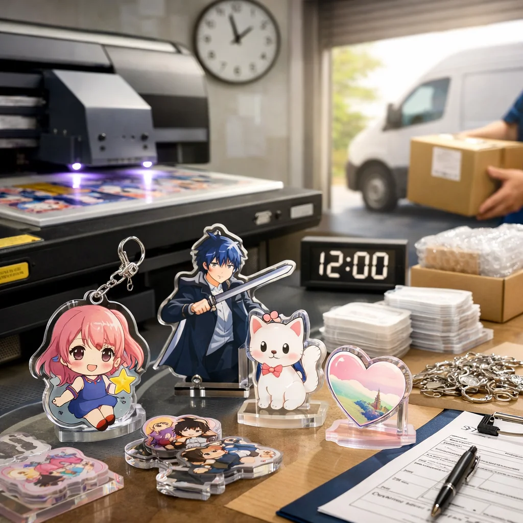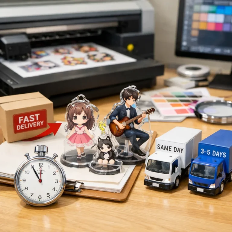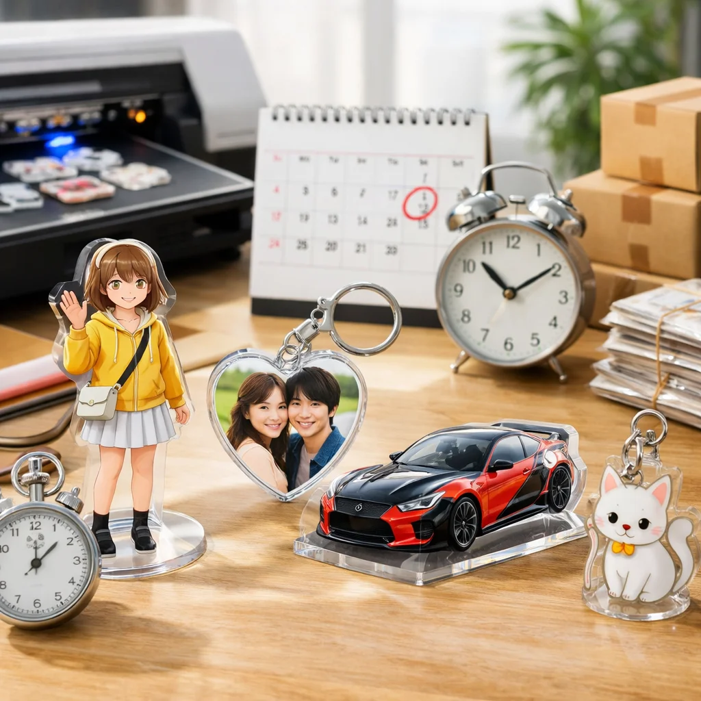 – 短納期サービスの利用:一部の業者では、通常よりも短い納期での制作を提供しています。例えば、アクリルグッズドットコムでは、短納期サービスを提供しています。 (参考: acrylic-goods.com)