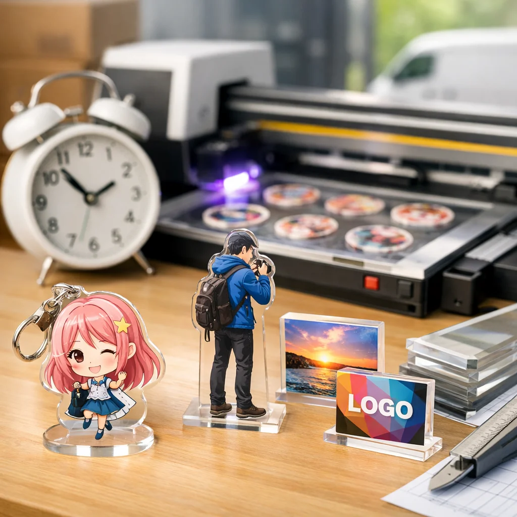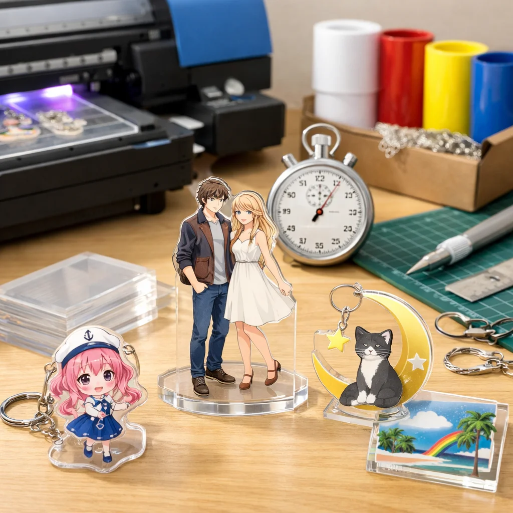 アクリルグッズの即日制作は、特に急な需要に対応できる便利なサービスです。ここでの「即日」とは、注文を受けてからおおよそ24時間以内に、アクリル商品の製作と受け取りが完了することを指します。もっとも一般的な商品としては、アクリルキーホルダーやアクリルスタンドなどが挙げられます。これらは個人の趣味やビジネスシーンでもよく利用されており、高い人気を誇るアイテムです。