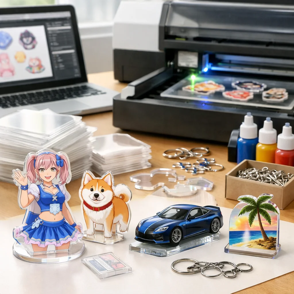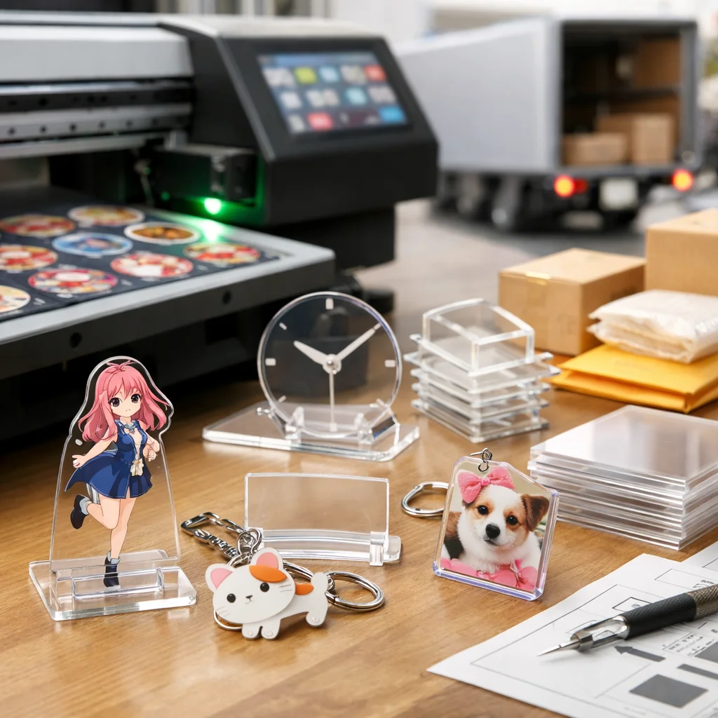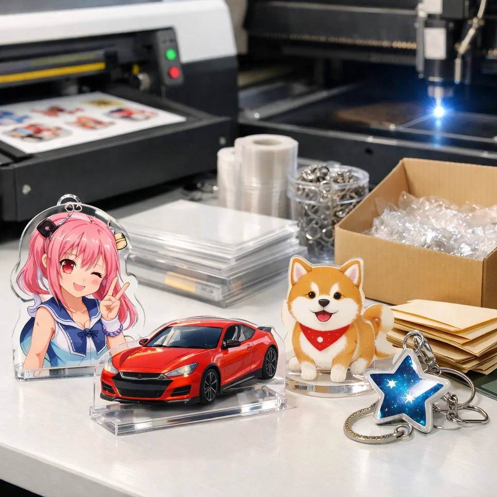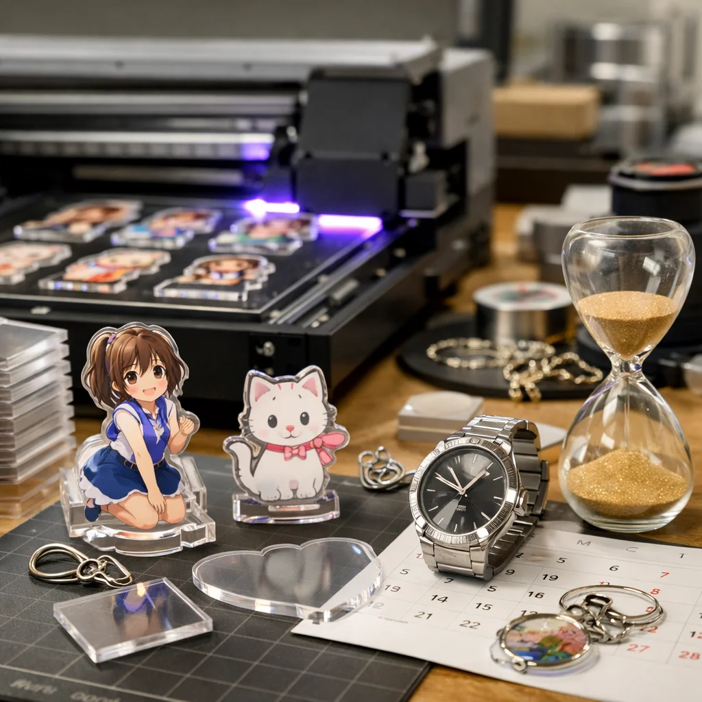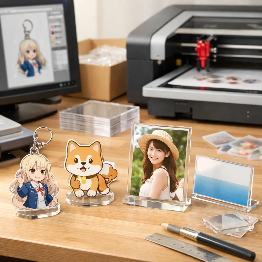 アクリルグッズは、さまざまな用途に応じて非常に人気が高く、需要も急速に増えています。その背景には、透明感や発色、耐水性、小ロット適性など、アクリルが持つ特性が大きく関与しています。特に、推し活や同人活動、企業ノベルティの制作においては、アクリルグッズが選ばれることが多いのです。