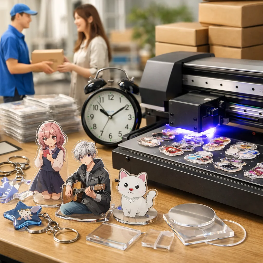 「アクリルグッズ」の制作を依頼する際、特に注目したいのが即日の納品や受け取りに関する条件です。お客様のニーズに応じて、当日受取や当日出荷、さらには翌日以降の選択肢がありますが、それぞれの条件を理解することが重要です。