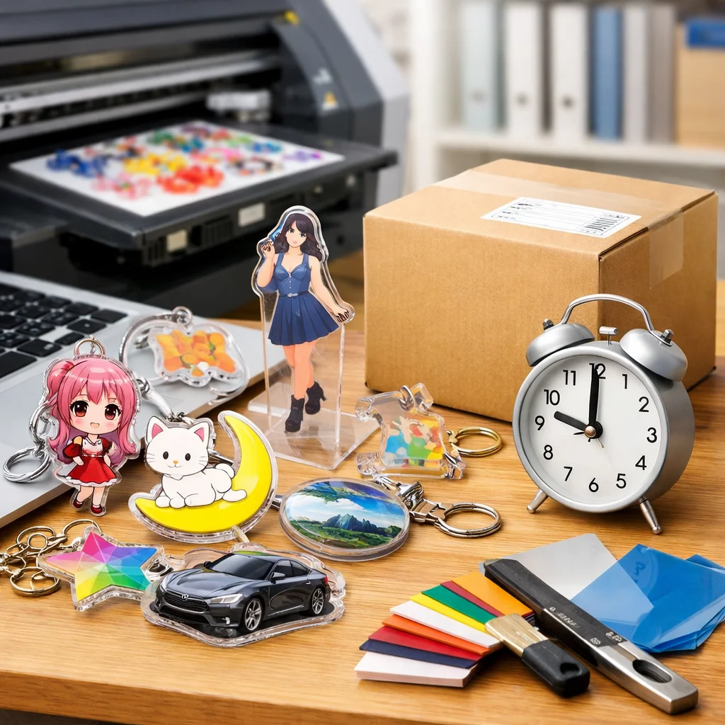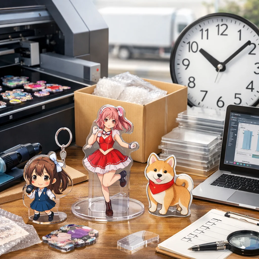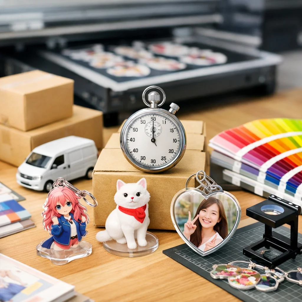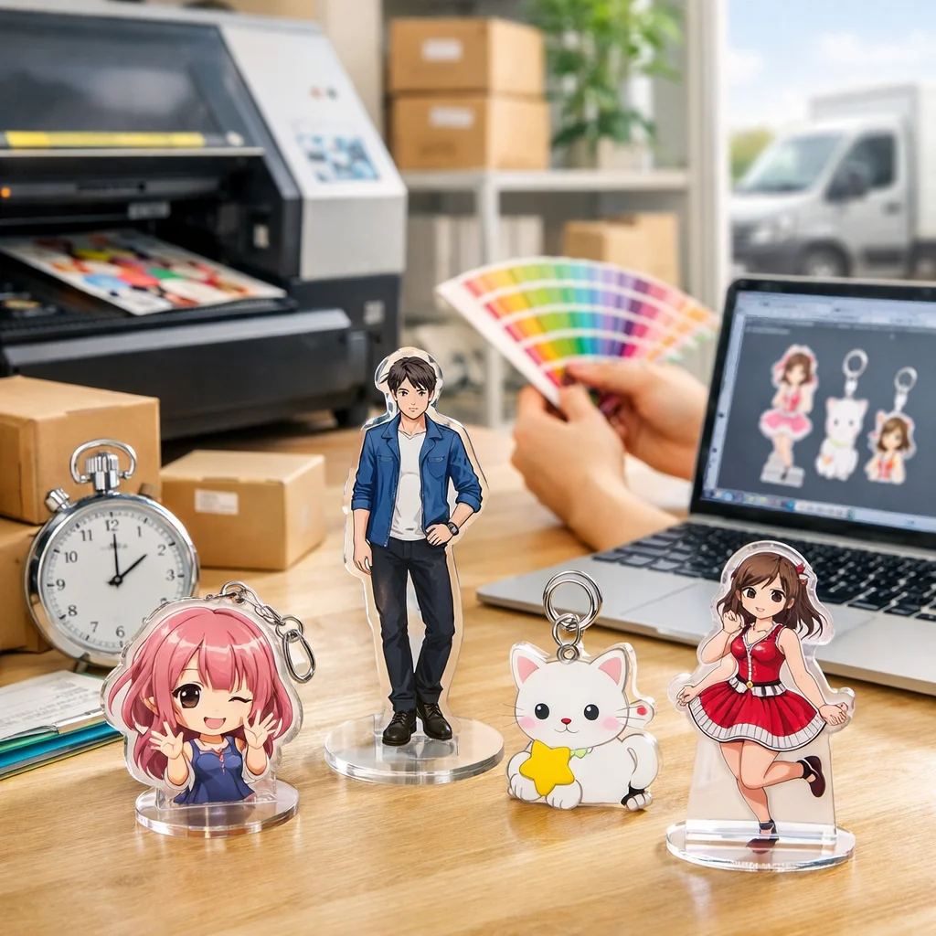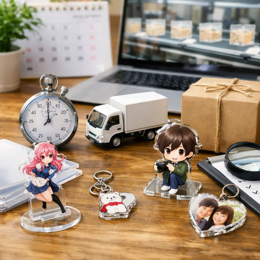 さらに、業者の繁忙期も考慮に入れる必要があります。一般的に、年末年始や大型連休前後は、アクリルグッズの需要が高まり、納期が延びがちです。こうした期間を避けてしっかりと余裕を持った発注を心がけることで、最短での納品を実現することが可能です。