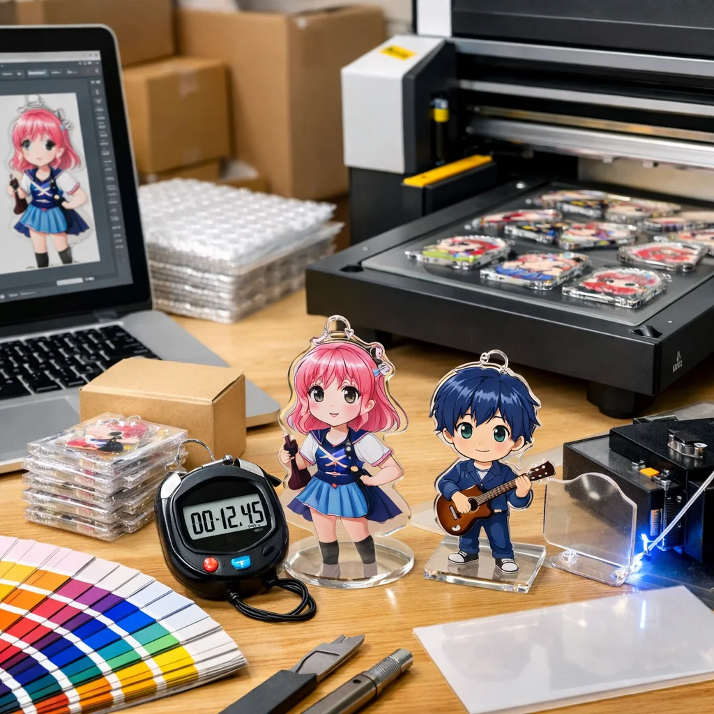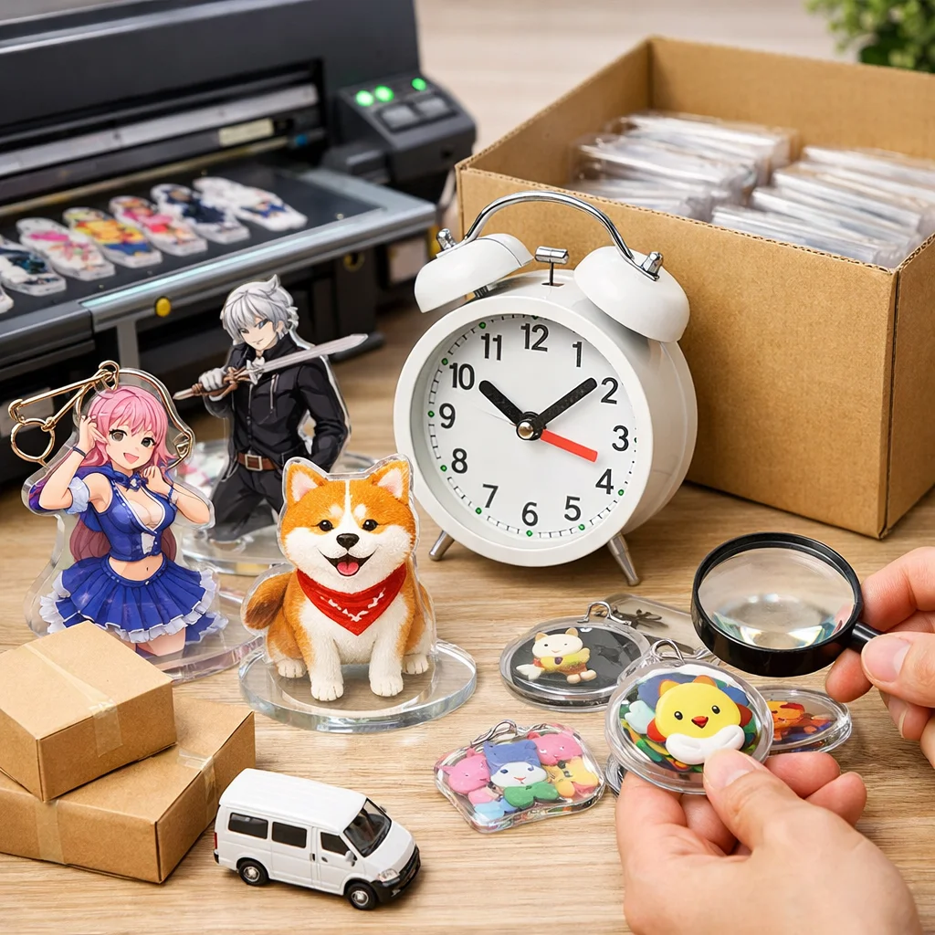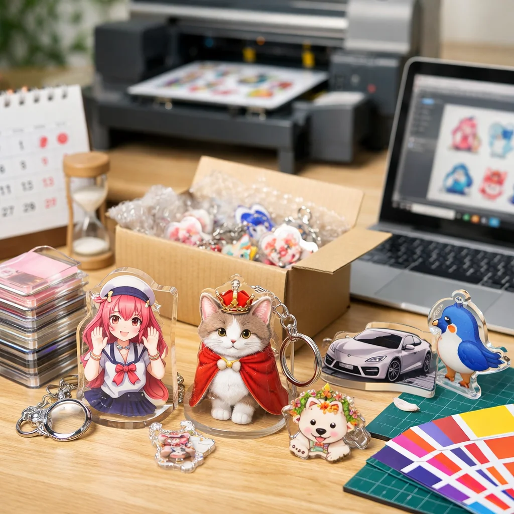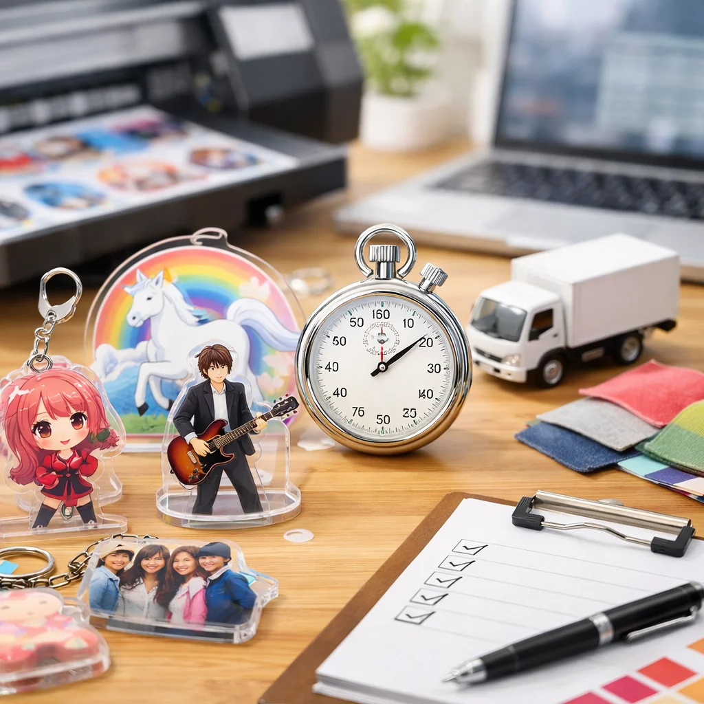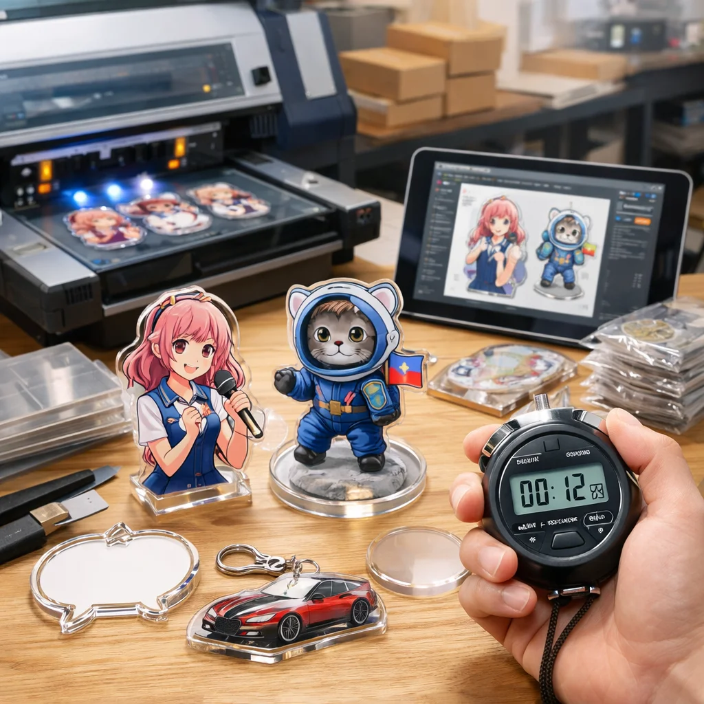 さらに、業者の繁忙期も考慮に入れる必要があります。一般的に、年末年始や大型連休前後は、アクリルグッズの需要が高まり、納期が延びがちです。こうした期間を避けてしっかりと余裕を持った発注を心がけることで、最短での納品を実現することが可能です。
