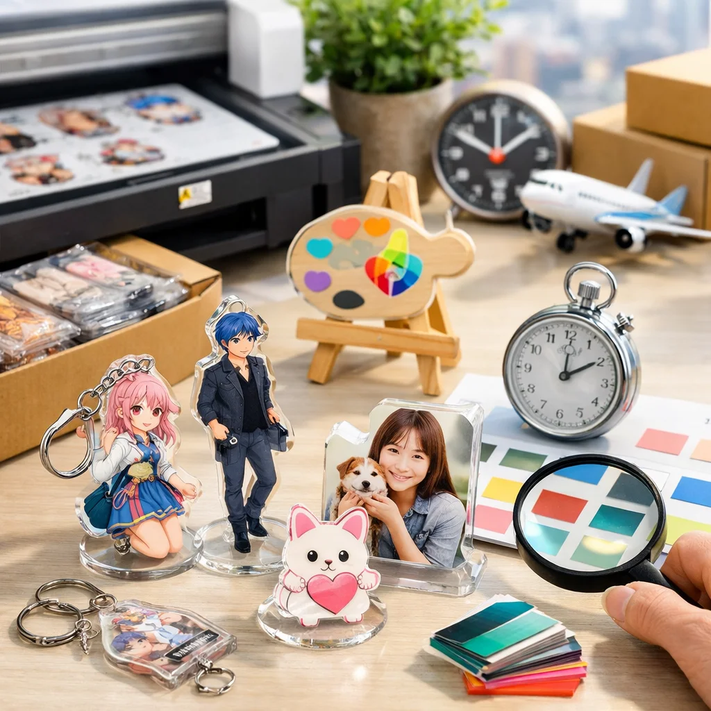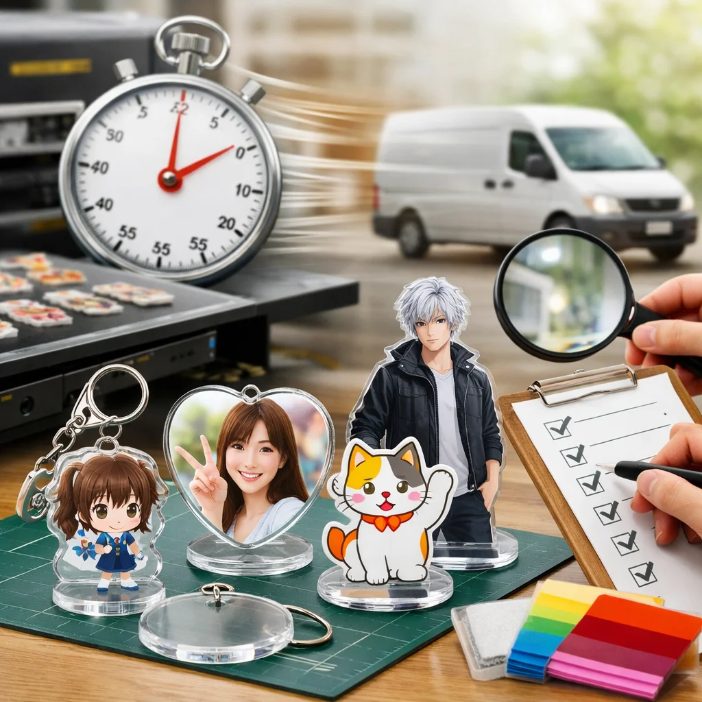 アクリルグッズの製作をスムーズに進めるためには、業者選びが決定的な要因となります。「要件定義→候補抽出→見積→入稿→校了→製作→発送」の流れを把握し、特に失敗例を意識した回避策を実行することで、最短納期での達成が可能です。
