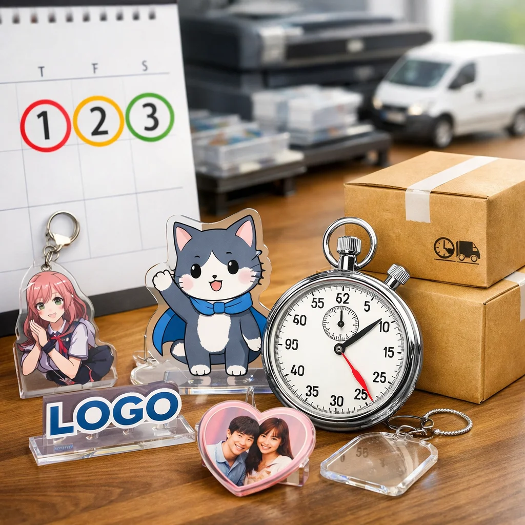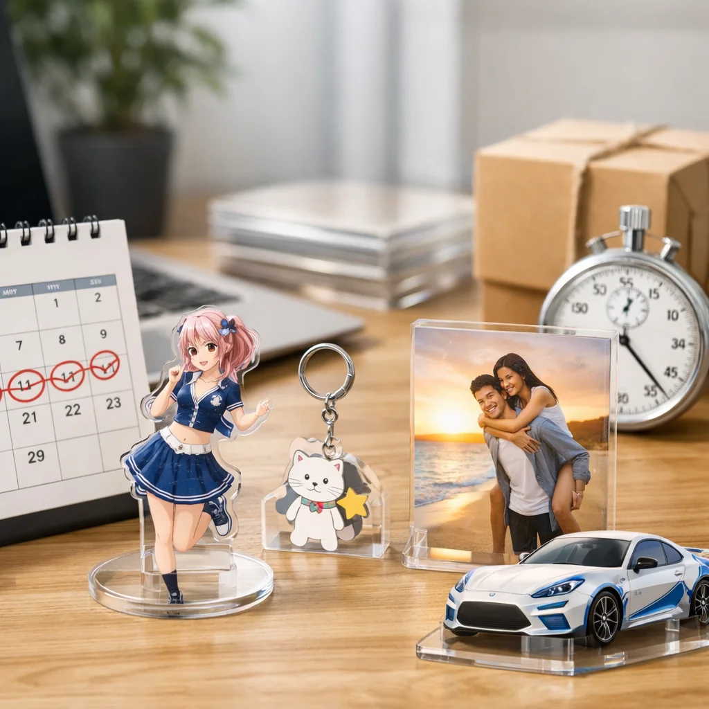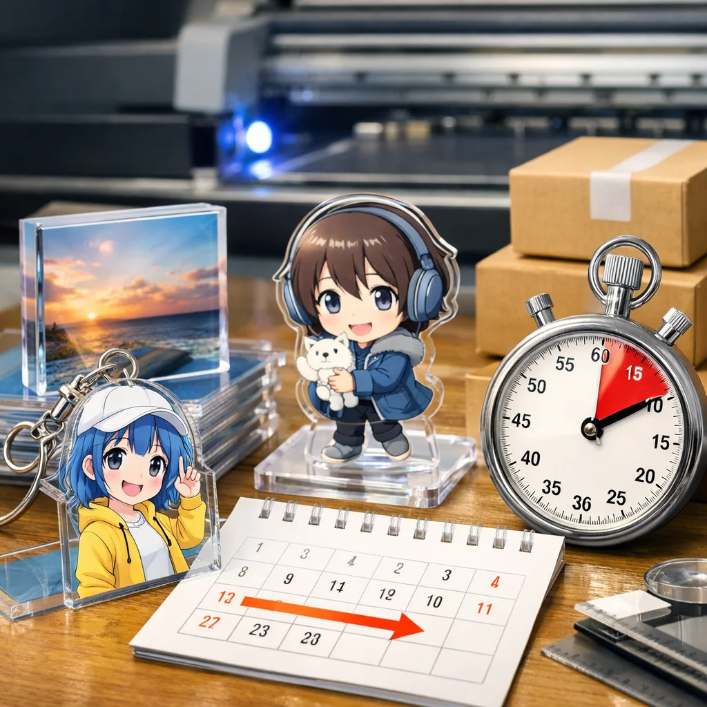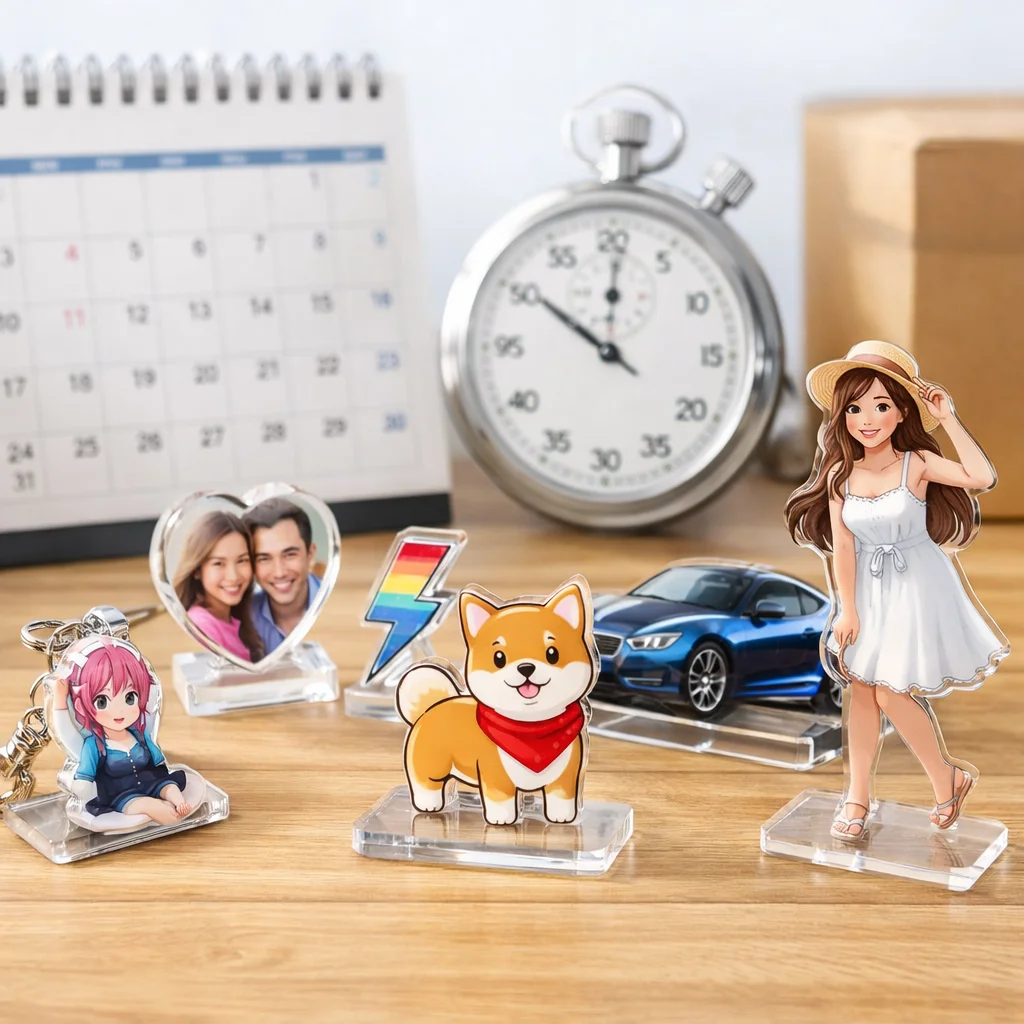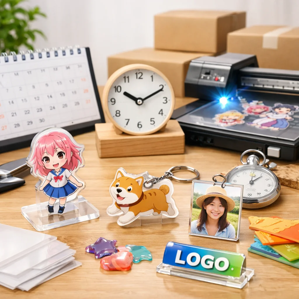 アクリルグッズの発注を検討する際、各種類の最短納期を把握することは、プロジェクトのスケジュール管理や計画立案において非常に重要です。以下に、主要なアクリルグッズの最短納期を比較し、各項目について詳しく解説します。