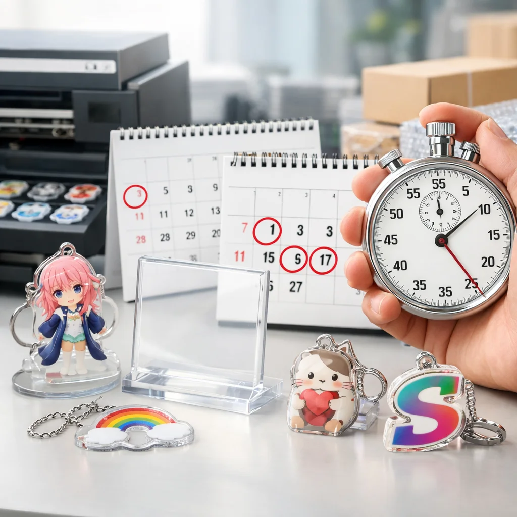 アクリルグッズの納期は 製作日数、営業日換算、校了のタイミング、出荷日と到着日の違いを理解することが重要です。