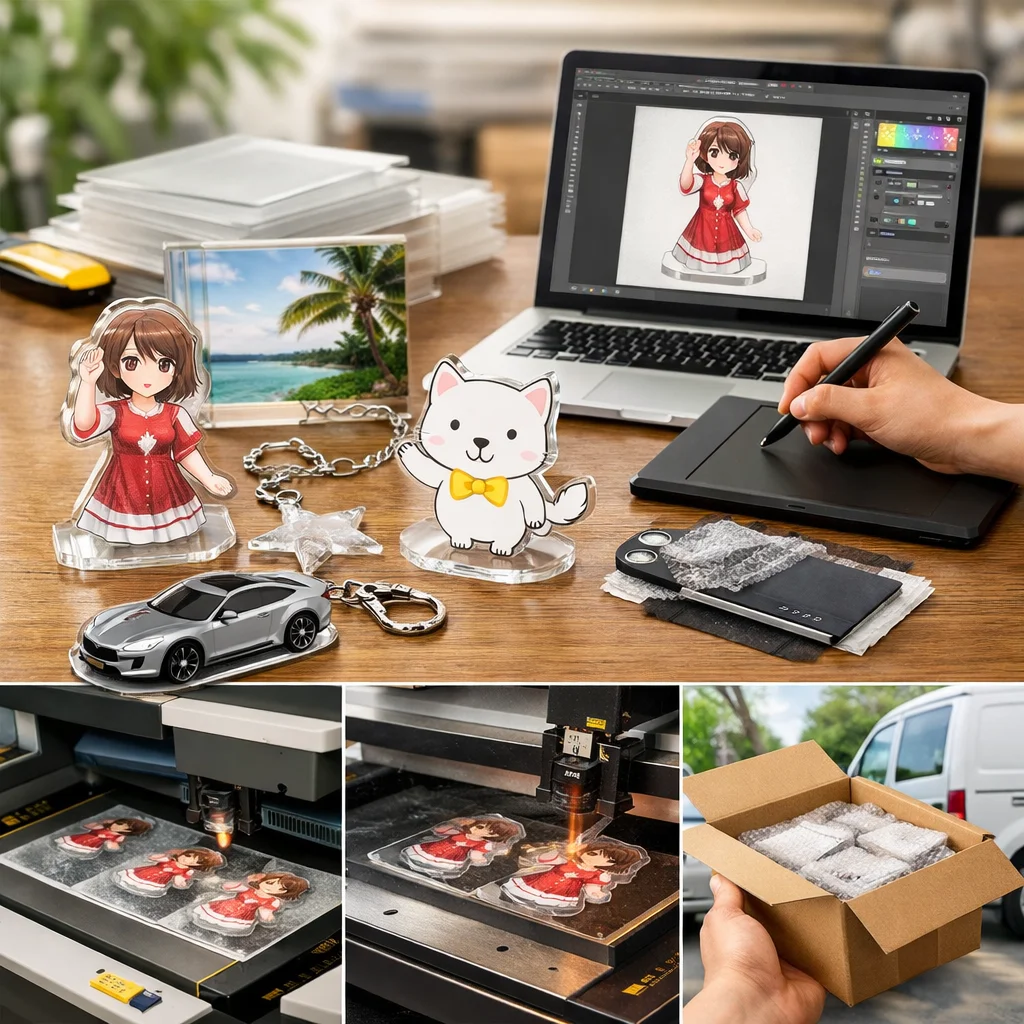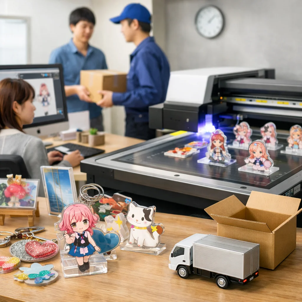 – 制作側がやること: 入金確認後、アクリルグッズの制作を開始します。印刷やカットなどの工程を経て、製品を完成させます。