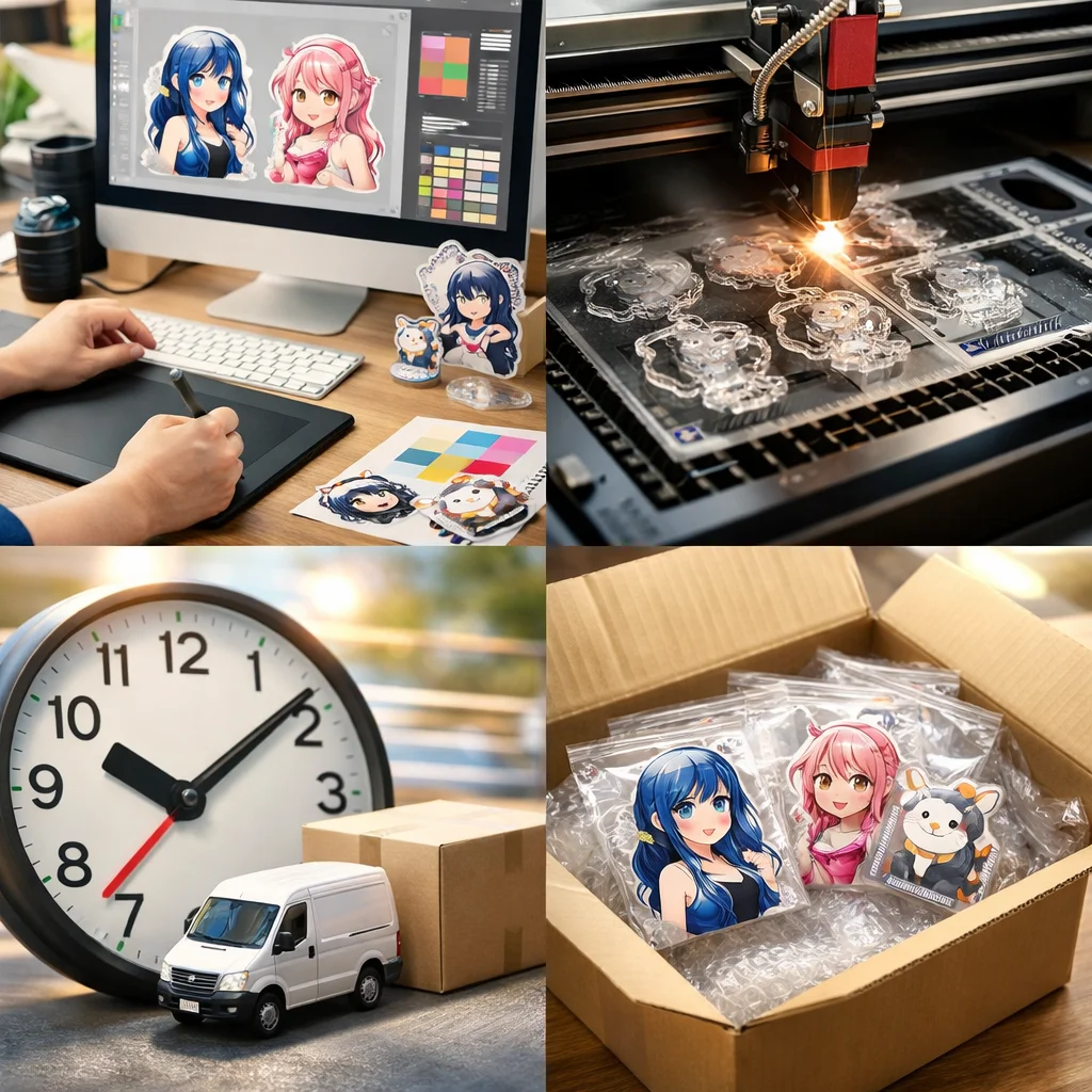 アクリルグッズの短納期制作を希望されるお客様に向けて、申込からお届けまでの一般的な流れと、各ステップでのチェックポイントをご紹介します。