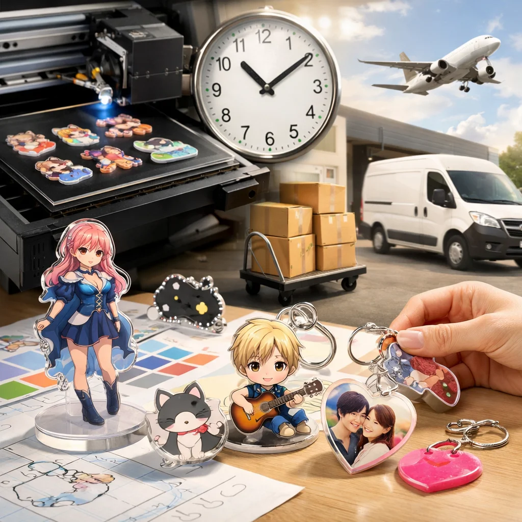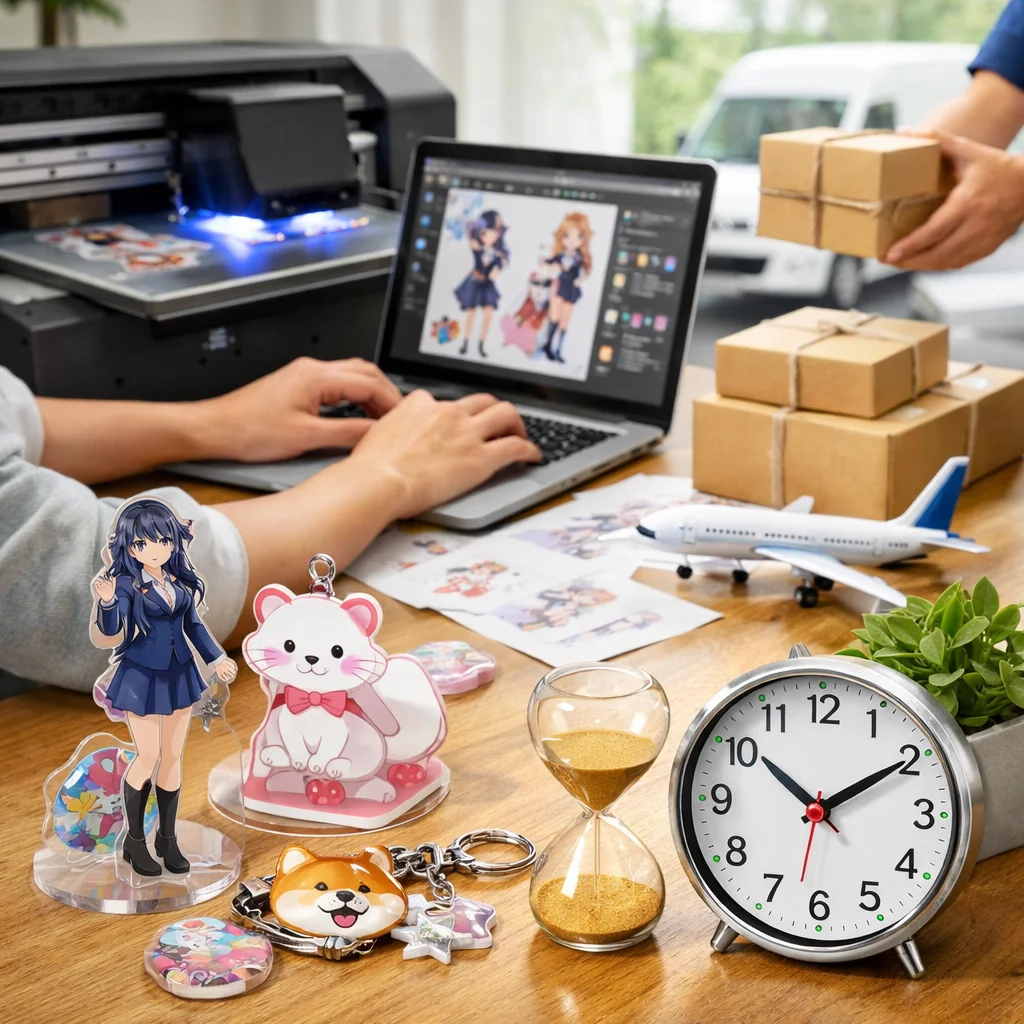 短納期でのアクリルグッズ制作は本当に可能でしょうか?近年、ビジネスニーズの多様化に伴い、短期間でのアクリルグッズの制作が求められる場面が増えています。ここでは、アクリルグッズに関する短納期制作の流れを詳しく解説し、実際に可能な条件と難しい条件を整理します。