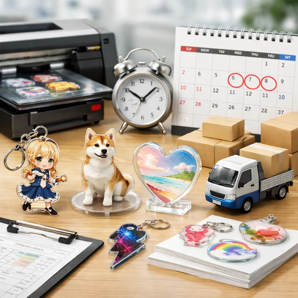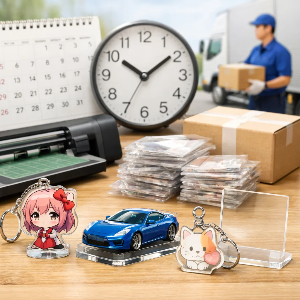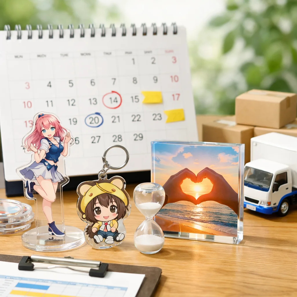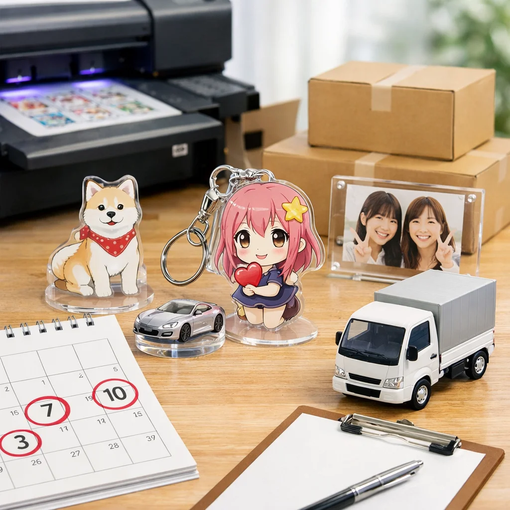 アクリルグッズ 納期 日数 一覧をご覧いただきありがとうございます。この記事では、アクリルグッズの納期に関する基本知識を整理し、納期の定義や最短から標準、繁忙期の考え方について詳しく解説いたします。