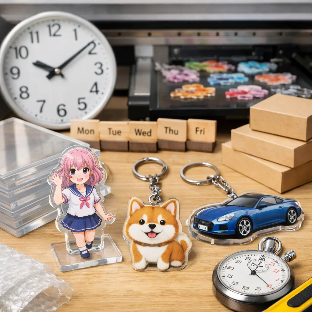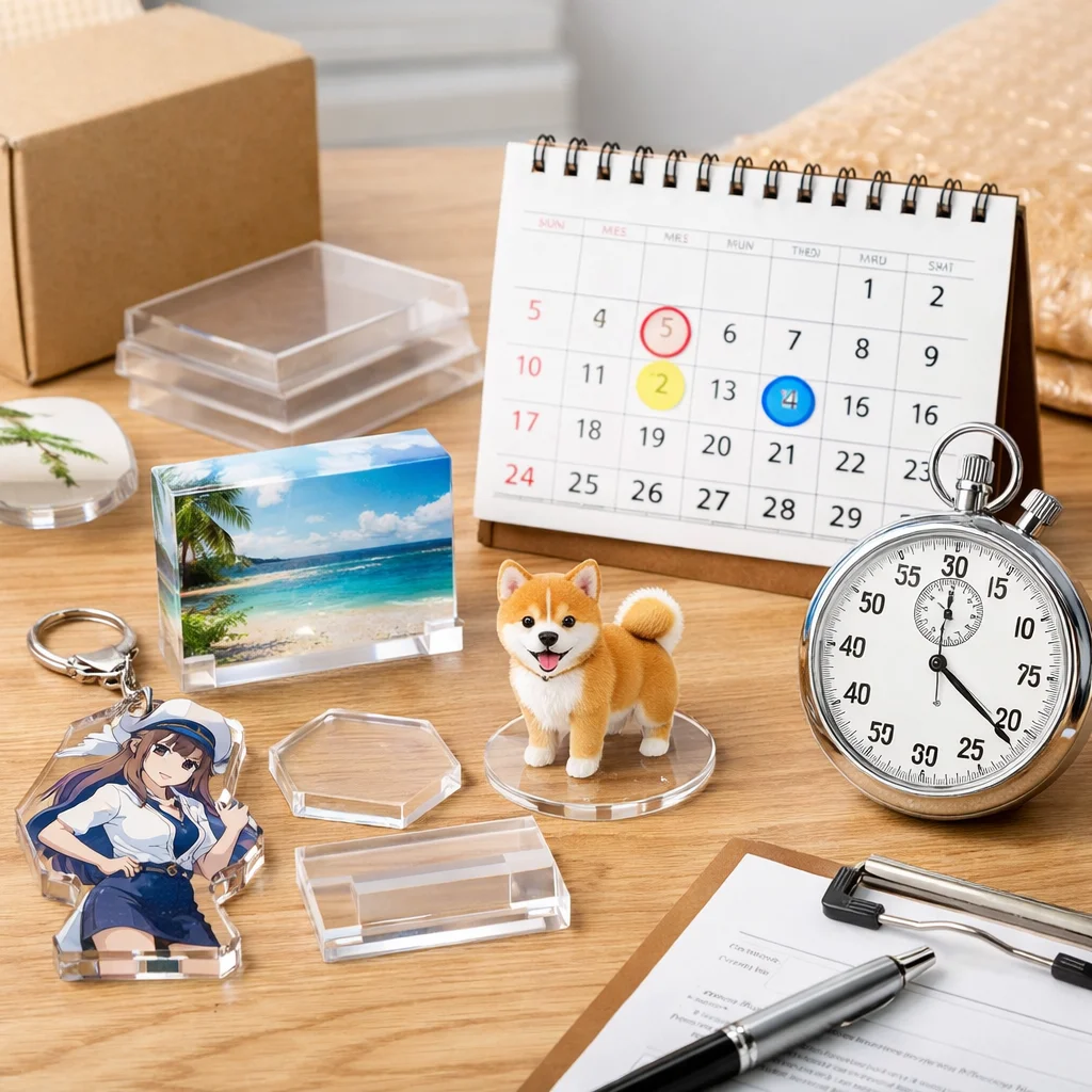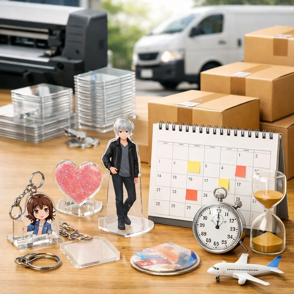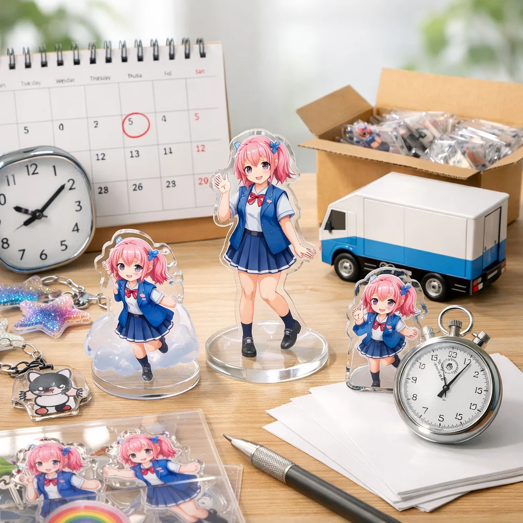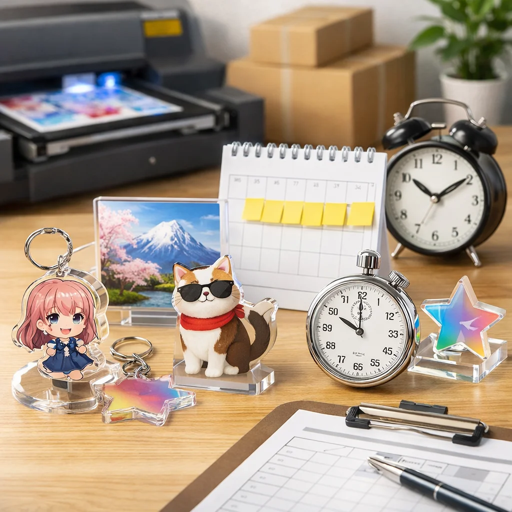 アクリルグッズ 納期 日数 一覧をご覧いただきありがとうございます。この記事では、アクリルグッズの納期に関する基本知識を整理し、納期の定義や最短から標準、繁忙期の考え方について詳しく解説いたします。