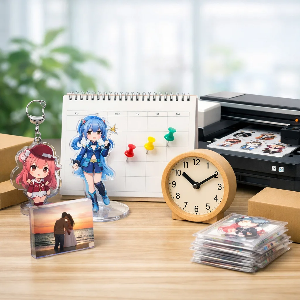 アクリルグッズは、さまざまな種類があり、それぞれの納期に違いがあります。アクリルグッズの納期は、製作工程の違いにより異なるため、理解しておくことが重要です。ここでは、アクリルグッズの主要な種類とその納期を一覧で比較し、その理由を詳しく説明します。